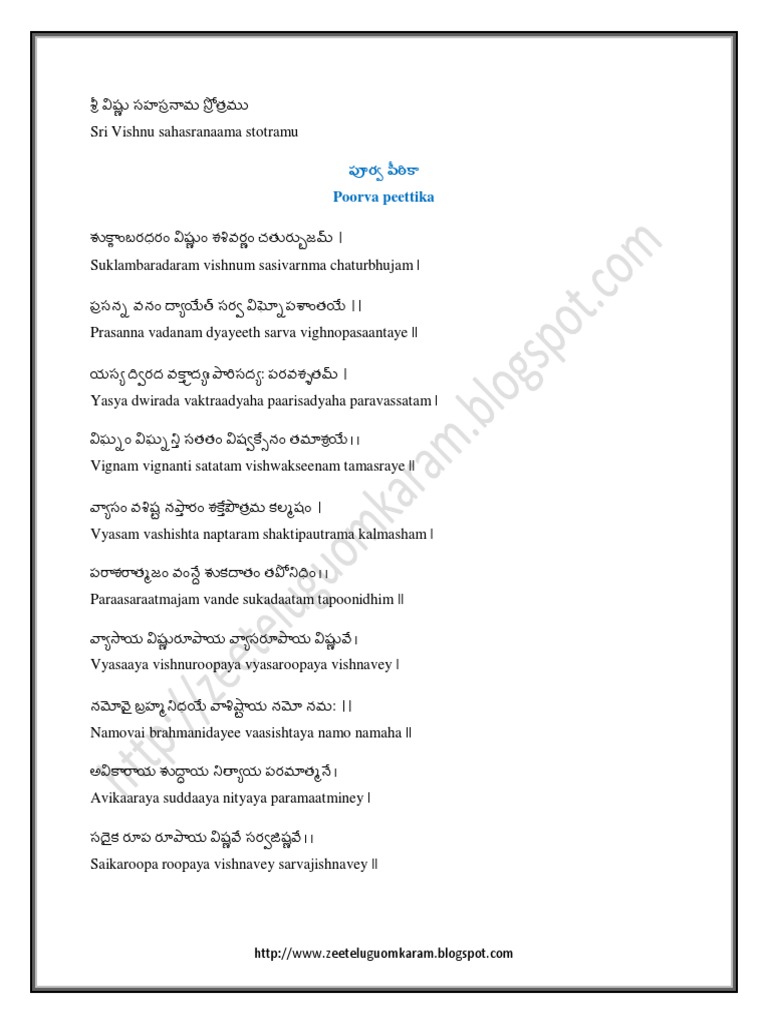 Vishnu Sahasranamam Stotram lyrics in sanskrit Complete June 24th 2018 - vishnu. Sree Lalita Sahasra Nama Stotram Telugu Lyrics Text Sree Lalita Sahasra Nama. Sri Vishnu Sahasranamam By DrEelapavuluri Pandurangarao In Telugu.